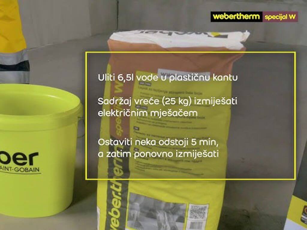- Prije korištenja weber.therm specijal W ljepila za termo fasadne sustave podloga mora biti ravna, čista, čvrsta, suha, bez dijelova koji se odvajaju