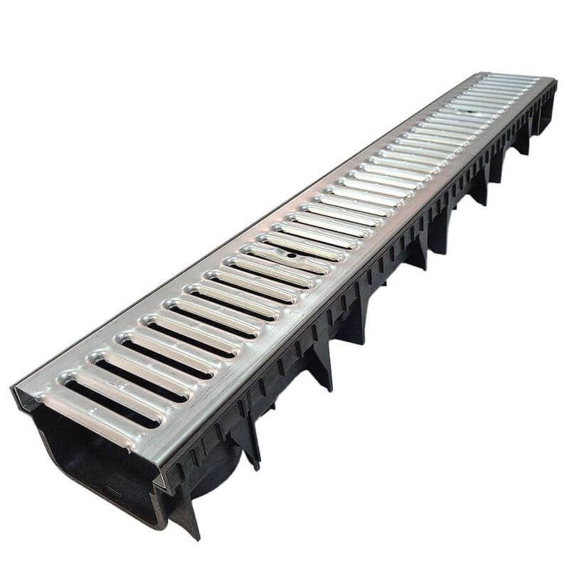 Bočni završetak za kanalicu 130/85 od proizvođača GUTTA – izrezivanjem se nudi otvor za ispust promjera Ø50 / Ø60 mm. Kako bi se održala vodonepropusnost kanala, preporuča se uporaba bitumenskih ili silikonskih brtvila. Zavarivanjem spojeva može se postići još bolja i dugotrajnija vodonepropusnost.