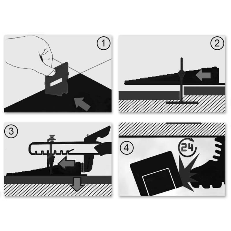 Kajla za niveliranje 100/1 3KZ ZAGREB – primjenom ove kajle za niveliranje tijekom postavljanja pločica postiže se potpuna ravnina površine i položenih pločica. Sustav je vrlo jednostavan i sastoji se od spona, klinastih podložaka (kajli) i kliješta za njihovo izravnavanje. Spona se postavi ispod zalijepljene pločice, s njene druge strane se stavi druga pločica, a onda se ubaci kajla koja se zategne specijalno dizajniranim kliještima s graničnikom koja osiguravaju da sve kajle budu isto zategnute, a površina besprijekorno ravna. Kajle se mogu koristiti više puta a spone su potrošni materijal.