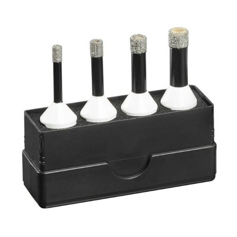 Krune za keramiku set Ø 6-8-10-12mm EHSCSET010 HIKOKI su set od 4 profesionalne dijamantne krune za bušenje tvrdih površina kao što su pješčenjak, pločice, klinker, granit, mramor, kamen.