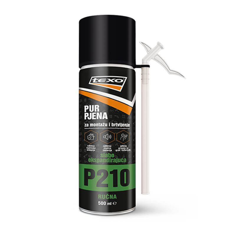 PUR pjena slabo ekspandirajuća ručna 500ml od proizvođača TEXO idealno je rješenje za profesionalne i kućne primjene gdje je potrebna precizna izolacija i popunjavanje prostora. Namijenjena je ispunjavanju i izoliranju prostora između prozorskih okvira i zidova, brtvljenju pukotina, zidova, krovova i spojeva, kao i montiranju vratnih i prozorskih okvira.