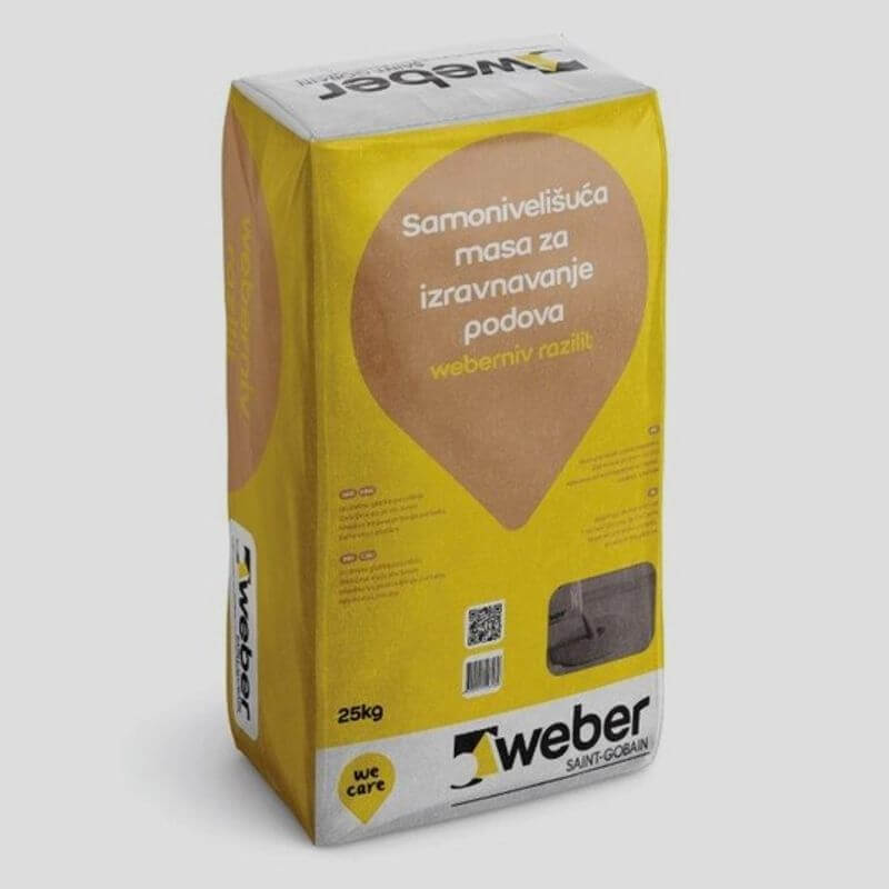 Razilit Plus 1-30mm 25kg od proizvođača WEBER koristi se za izravnavanje unutarnjih podnih površina. Samonivelirajuća masa za izravnavanje unutarnjih podnih površina koja se koristi prije postavljanja parketa, laminata, pločica, PVC podova, linoleuma, tepiha i drugih podnih obloga.