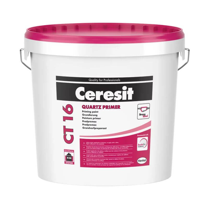 Temeljni predpremaz za žbuke CT 16 15kg CERESIT je pretpremaz za pripremu podloge prije nanošenja žbuke na bazi sintetičkih smola. Primjenjuje se u unutarnjim i vanjskim prostorima. Može se upotrebljavati na svim mineralnim podlogama kao što su beton, vlaknasti cement, žbuka itd.