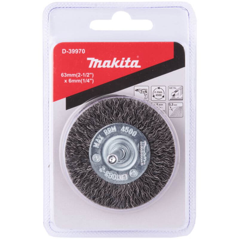 Žičana okrugla četka 6x63mm od proizvođača MAKITA je žičane četke za bušilicu – idealna za uklanjanje lagane hrđe s ravnih površina i rubova.