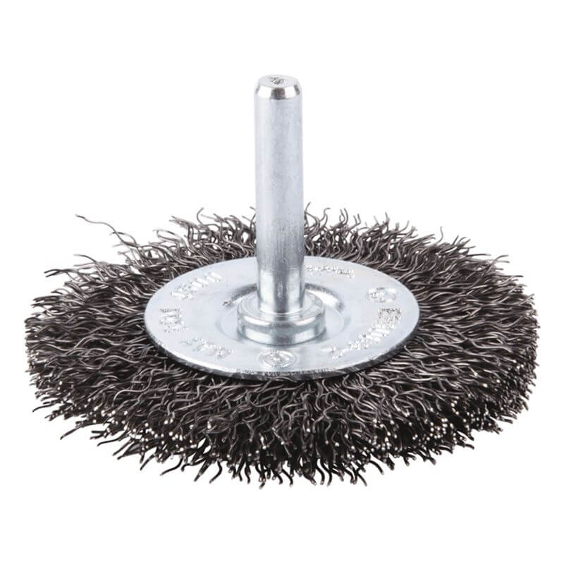 Okrugla četka Ø 63 mm s valovitim žičanim četkama debljine 0,3 mm izrađenim od pocinčanog čelika. Pogodna za mekše uklanjanje i srednje snažno djelovanje četke na ravnim i neravnim površinama. S okruglim prihvatom od 6 mm.
